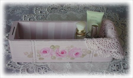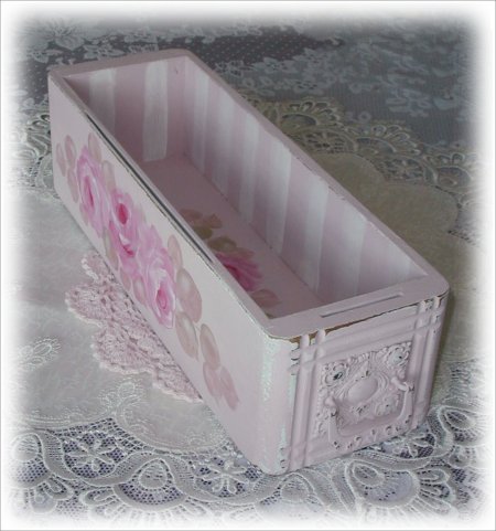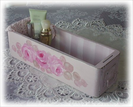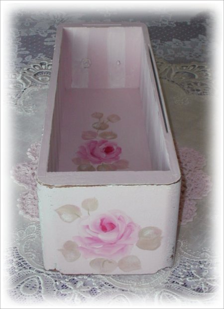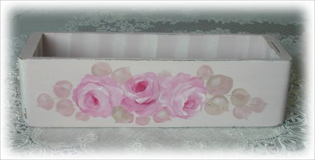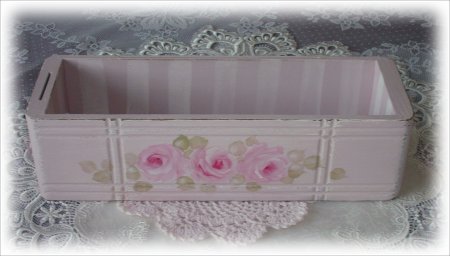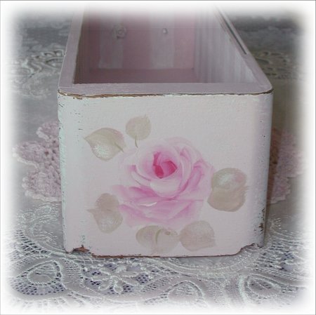 Drawer measures approximately 14.5" long by 4.75" wide and 4" tall. This is a one-of-a-kind original design by artist Cherie Perry. Perfect for your shabby chic, cottage, romantic, Victorian, country or rose home decor.
